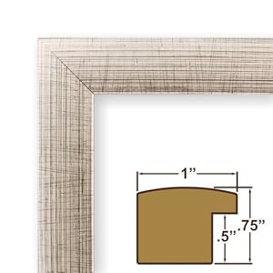 Contemporary style, smooth distressed silver finish Frame includes: clear styrene facing, rigid cardboard backing and wire hang