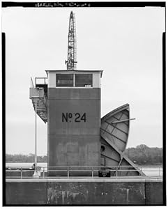 Product Description : Size: 8 x 10 Print7. VIEW OF DAM, SHOWING PIER NO. 1, TAINTER GATE NO. 1 IN RAISED POSITION, LOCOMOTIVE CRANE BOOM, AND EMERGENCY BULKHEAD PICKUP, LOOKING NORTHEAST - Upper Mississippi River Nine-Foot Channel Project, Lock & Dam No. 24, Clarksville, Pike County, MO