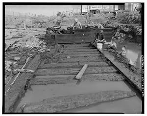 Product Description : Size: 8 x 10 Print50. View looking east. East bay is on the left. The dismantling of the last crib. Note the identifying tags nailed to the crib sidewalls. Foundation timbers and the outline of the crib structure are visible in the foreground. - Wabash & Erie Canal, Lock No. 2, 8 miles east of Fort Wayne, adjacent to U.S. Route 24, New Haven, Allen County, IN